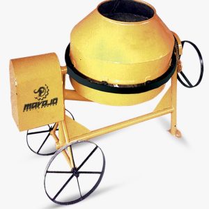 Betoneira Marajó, modelo BM 400 reforçada, 400 litros de capacidade, tambor rotativo reversível, cabine de proteção do motor, chassi reforçado, trava pedal, sistema de troca rápida do pinhão e seus rolamentos.